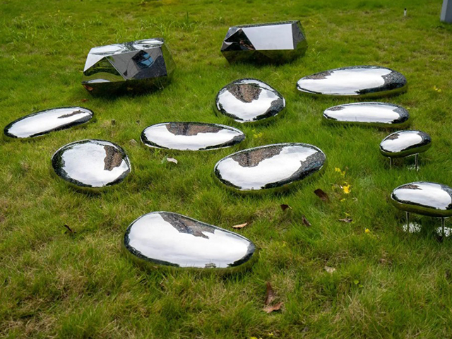 戶外景觀鏡面不銹鋼鵝卵石雕塑加工制作流程。