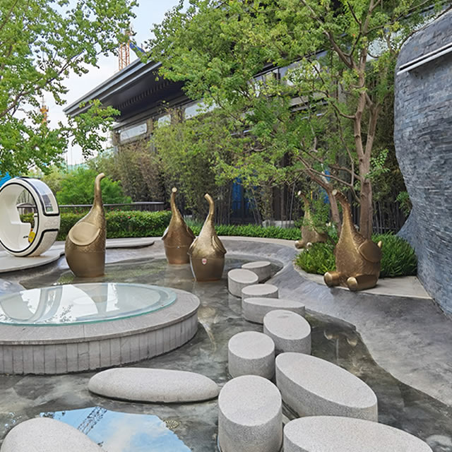 戶外水景不銹鋼噴水大象雕塑具有諸多優點。它不僅堅固耐用,能抵御各種自然環境的侵蝕,而且具有良好的可塑性,能夠塑造出豐富多樣的造型。從現代簡約風格到古典優雅的藝術作品,不銹鋼雕塑都能完美呈現。