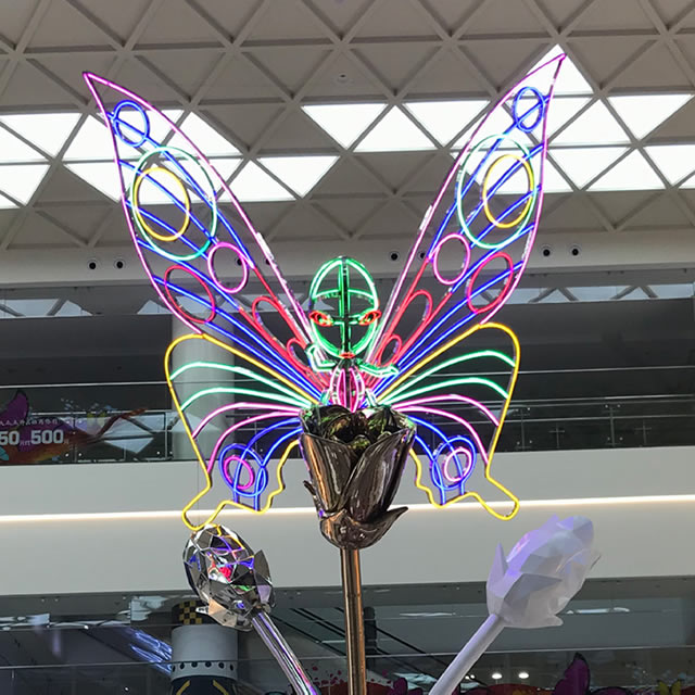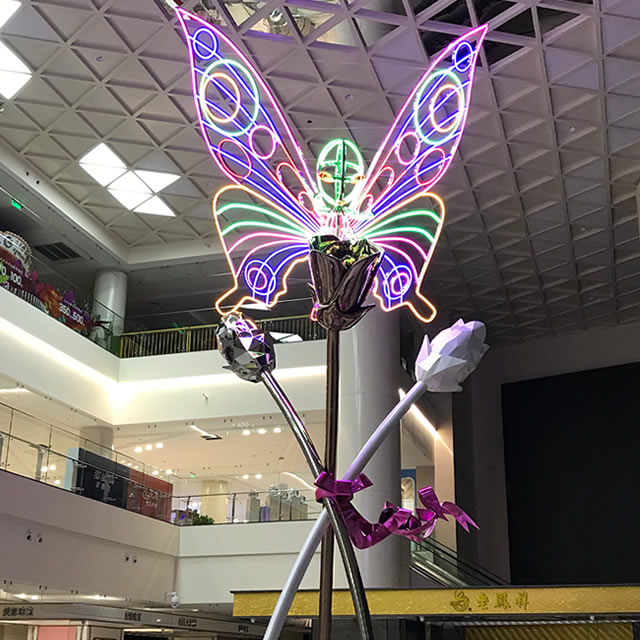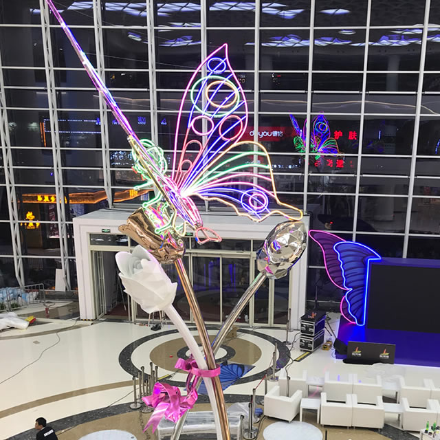 購物商場不銹鋼七彩蝴蝶雕塑具有諸多優點。它不僅堅固耐用,能抵御各種自然環境的侵蝕,而且具有良好的可塑性,能夠塑造出豐富多樣的造型。從現代簡約風格到古典優雅的藝術作品,不銹鋼雕塑都能完美呈現。