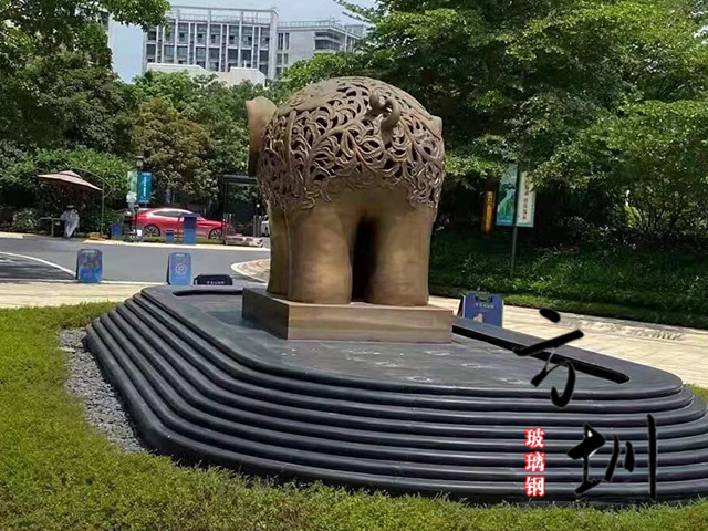 ? 鏤空玻璃鋼水景大象雕塑尺寸標準為1200*900*1100,選用穩定性較強的196樹脂及鉑金玻璃纖維布或無堿纖維氈復合而成,打磨選用汽車原子灰,四層噴涂最后外罩汽車漆清漆做仿銅效果,全體比例和諧形象逼真的高品質玻璃鋼大象雕塑。大型腳底預留角鐵和地上固定防傾倒更安全,與水景搭配和諧造景。