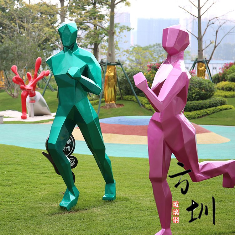 - 幾何多切面跑步運動玻璃鋼人物雕塑