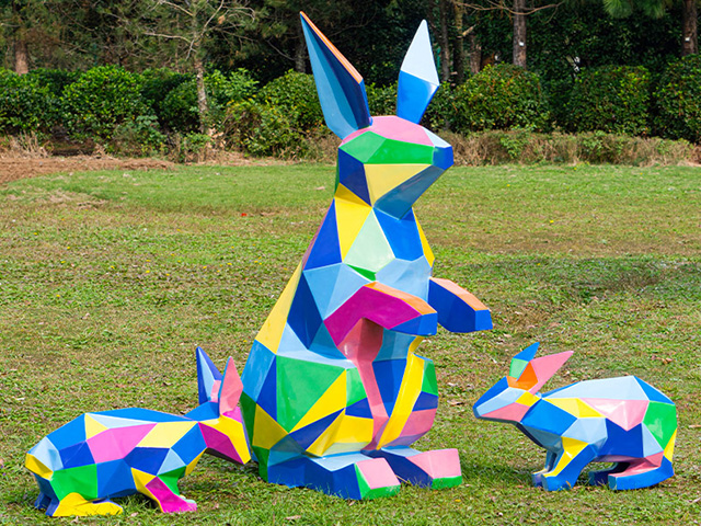 兔是機敏和幸運的象征,將兔子的造型和時下正流行的幾何切面創意結合起來制作的切面兔子雕塑,在保留了兔子主要特征的同時,對兔子的外觀進行了抽象化的加工,棱角分明的線條將兔子表面分割成一個個不同的切面,全新的造型令人過目難忘。