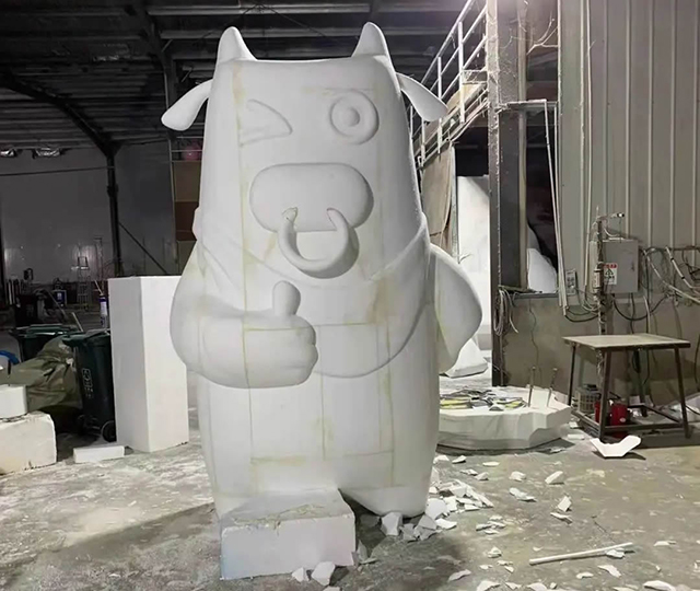 通過軟件制作出雕塑的3D模型,然后進行分割,通過泡沫雕刻機器分別雕塑出來,使用粘合劑進行組合粘貼,細節部分進行調整,直至與設計圖紙一致,然后拍照發給客戶確認造型,再進行下一步 — 制作石膏模具。