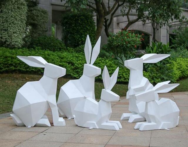 玻璃鋼幾許籠統(tǒng)切面小白兔雕塑,各有各有形狀各有各的風(fēng)趣,幾款造型可隨意調(diào)配自由組合,顏色可根據(jù)客戶需求從頭上色。這種雕塑除了可以選用玻璃鋼原料制造,還可以選用不銹鋼原料進行制造,要做好此類切面雕塑,一定要確保切面線條的筆直。