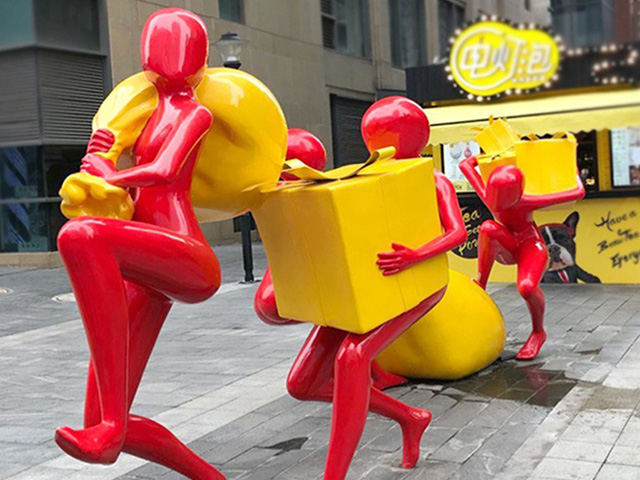 采用玻璃鋼資料制造的雕塑,色澤鮮艷、線條流利、外型美觀、裝置便當(dāng)。能夠制成仿金、仿銅、仿石等多種外表效果,從而表現(xiàn)鮮明的現(xiàn)代感與時期感。
