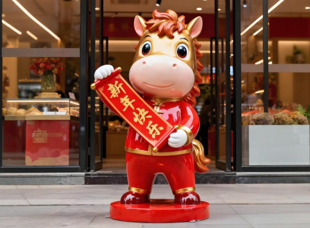 從古時祭祀青銅馬、陵墓石駿馬,到后來民間泥塑、剪紙的生肖馬,再到如今玻璃鋼定制的卡通拜年馬,對祥瑞的追求一脈相承,而承載的形式卻不斷演進。玻璃鋼雕塑的定制,使這一傳統意象從集體共有的文化符號,部分轉化為承載個人或家庭情感、審美趣味的獨特存在。它可以是企業大廳寓意“馬到成功”的活力象征,也可以是家庭客廳連接代際的溫馨年味擺設,或是饋贈親友一份別出心裁的新春賀禮。