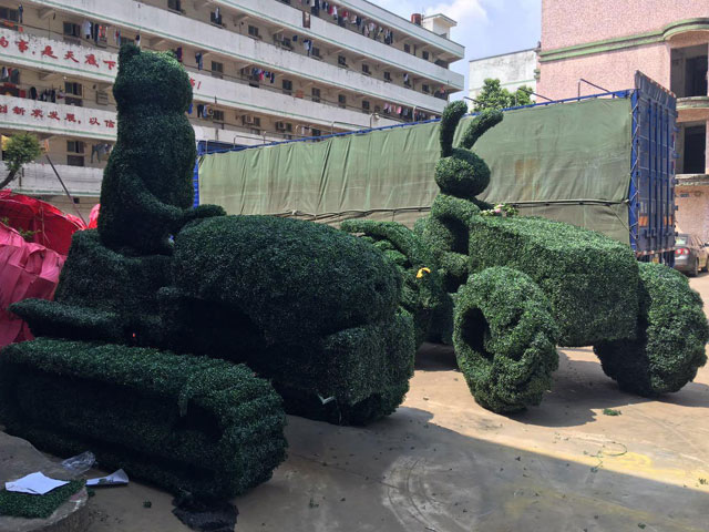 在藝術表現方面,綠雕植物雕塑更是獨具匠心。設計師們通過精心挑選不同顏色、形狀和紋理的植物,運用高超的造型技巧,將植物打造成各種栩栩如生的形象,如動物、人物、建筑等。這些雕塑作品不僅具有強烈的視覺沖擊力,還能夠傳達出豐富的文化內涵和情感信息。有的綠雕植物雕塑以歷史故事為主題,展現了城市的悠久歷史和文化底蘊;有的則以現代藝術風格呈現,體現了城市的時尚與活力。