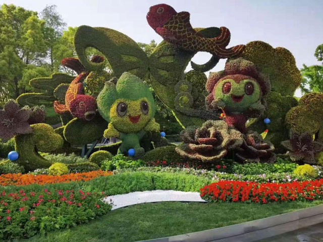 在藝術表現方面,綠雕植物雕塑更是獨具匠心。設計師們通過精心挑選不同顏色、形狀和紋理的植物,運用高超的造型技巧,將植物打造成各種栩栩如生的形象,如動物、人物、建筑等。這些雕塑作品不僅具有強烈的視覺沖擊力,還能夠傳達出豐富的文化內涵和情感信息。有的綠雕植物雕塑以歷史故事為主題,展現了城市的悠久歷史和文化底蘊;有的則以現代藝術風格呈現,體現了城市的時尚與活力。