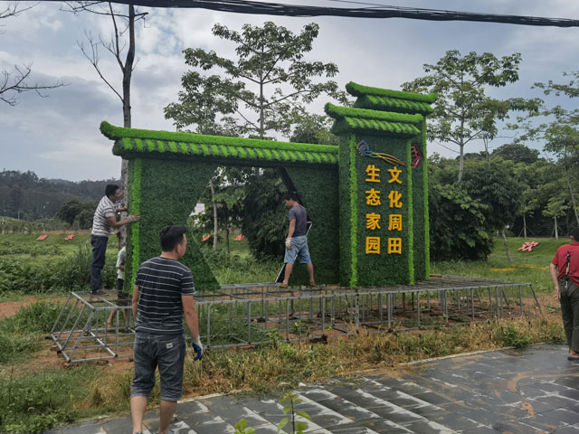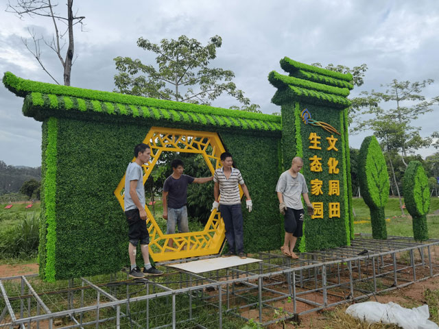 綠雕植物雕塑的制作過程也是一項復雜而精細的工程。首先,設計師需要根據場地環境和客戶需求進行創意設計,繪制出詳細的設計圖紙。然后,選擇合適的植物品種,并進行精心培育和修剪,使其達到最佳的生長狀態。接著,施工人員按照設計圖紙進行現場安裝和造型,將植物固定在特定的框架上,形成完整的雕塑作品。最后,還需要對綠雕植物雕塑進行定期的養護和管理,確保植物的健康生長和雕塑的美觀效果。