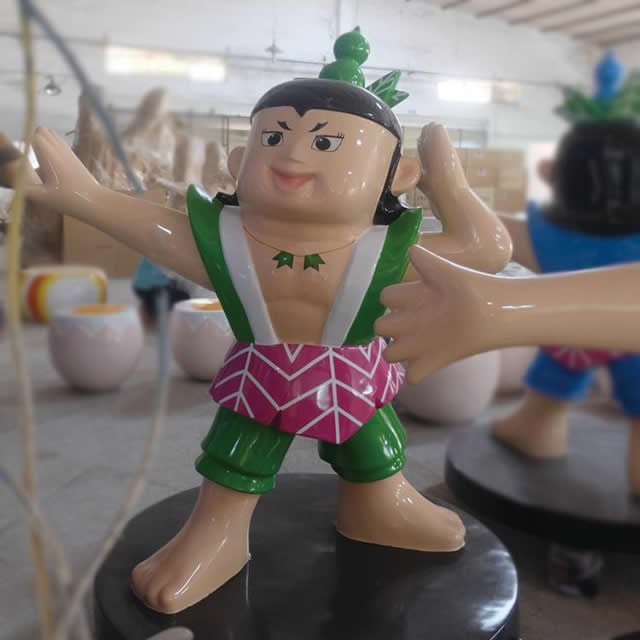 卡通影視玻璃鋼葫蘆娃雕塑制作工藝:雕刻泥稿-泥稿確認-模具制作-產品毛胚制作-表面效果處理-包裝。