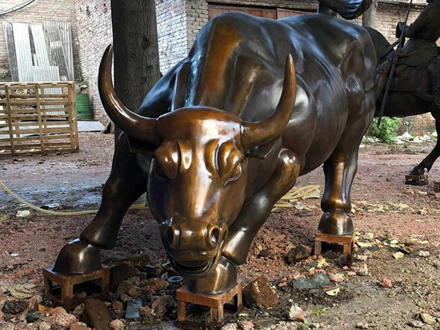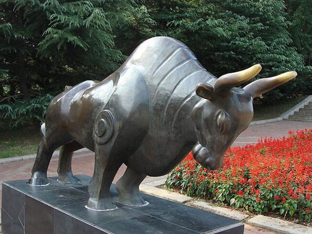 仿銅玻璃鋼動(dòng)物牛雕塑