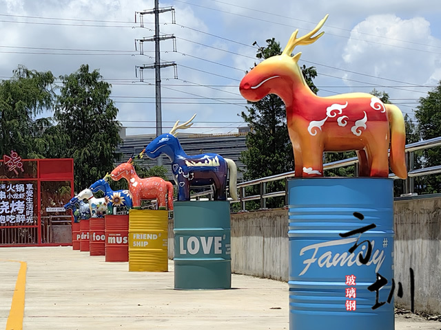 玻璃鋼雕塑的特性:具有可塑性強(只要您想的出造型,玻璃鋼就能做出成品),相對來說易成型、質輕,強度高, 耐腐蝕,相對來說成本相對較低、表面效果多樣等特點。