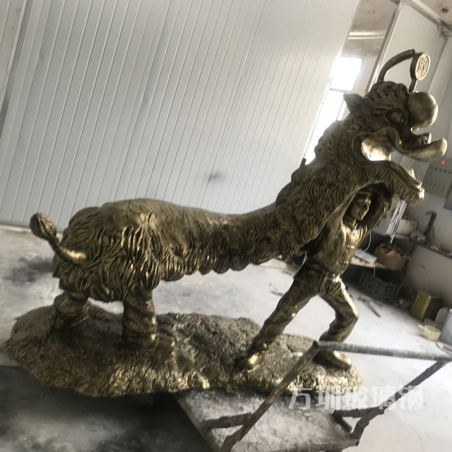 ? 舞獅仿銅玻璃鋼雕塑制作工藝:雕刻泥稿-泥稿確認-模具制作-產品毛胚制作-表面效果處理-包裝。