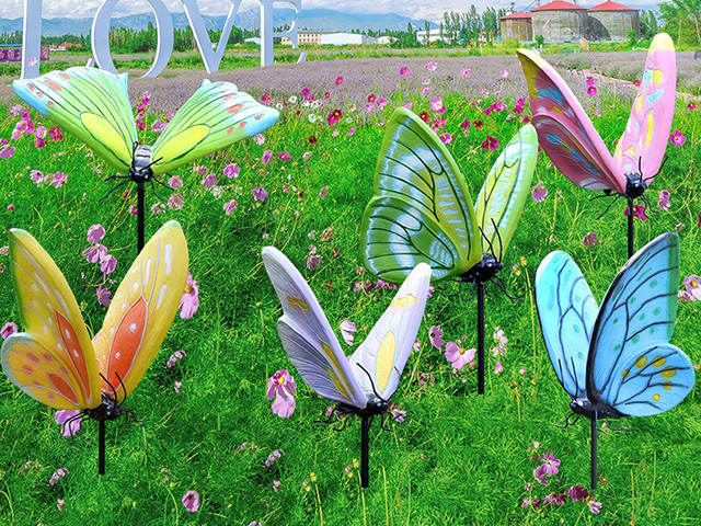 戶外公園景點玻璃鋼仿真彩繪蝴蝶雕塑