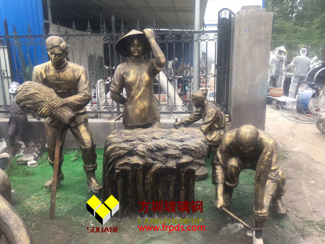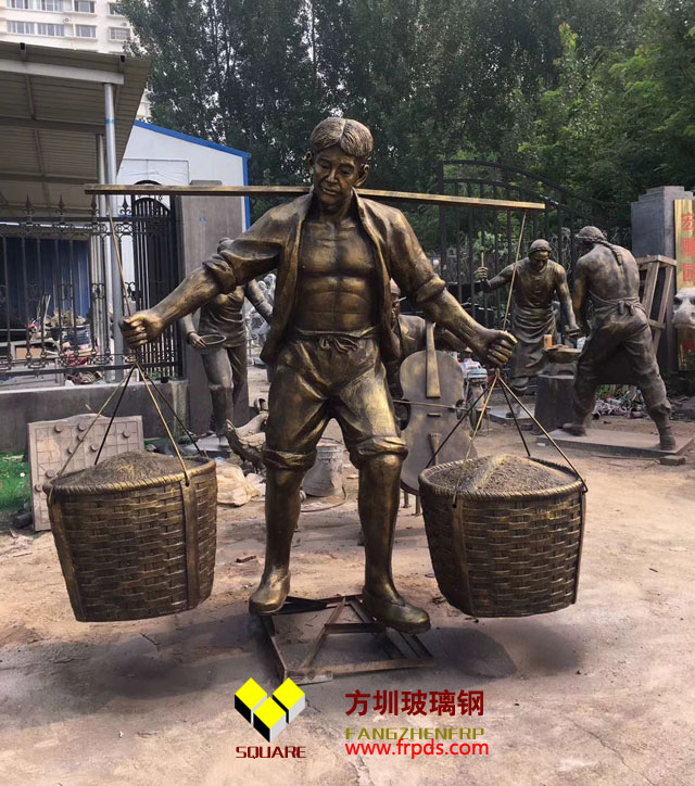 農村農民仿銅雕塑是雕塑特性:具有可塑性強(只要您想的出造型,玻璃鋼就能做出成品),相對來說易成型、質輕,強度高,耐腐蝕,相對來說成本相對較低、表面效果多樣等特點。