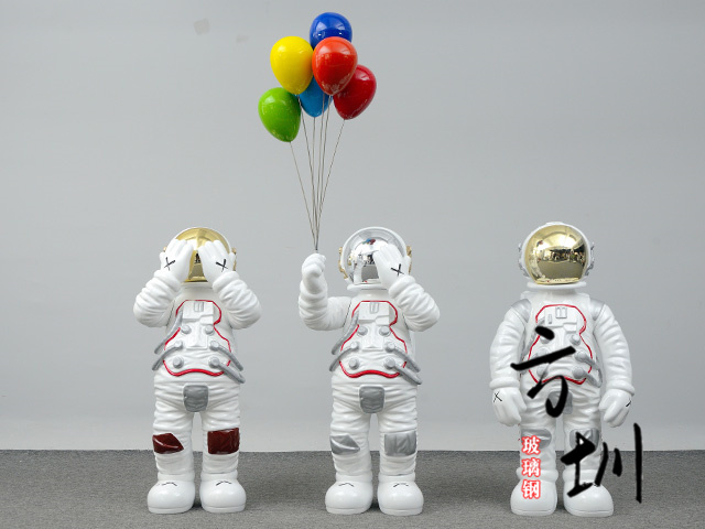 創意玻璃鋼卡通宇航員雕塑制作工藝:雕刻泥稿-泥稿確認-模具制作-產品毛胚制作-表面效果處理-包裝。