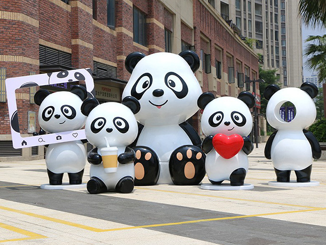 玻璃鋼卡通打卡網(wǎng)紅熊貓雕塑