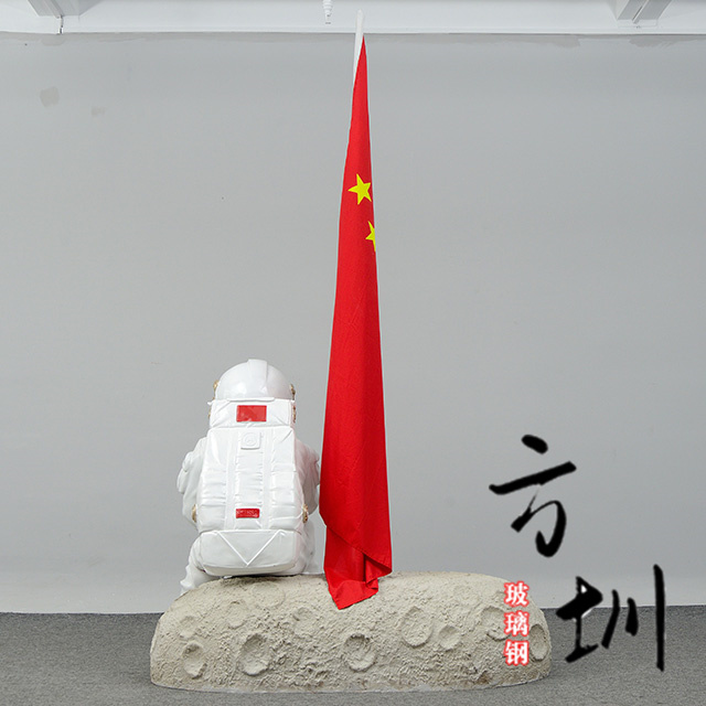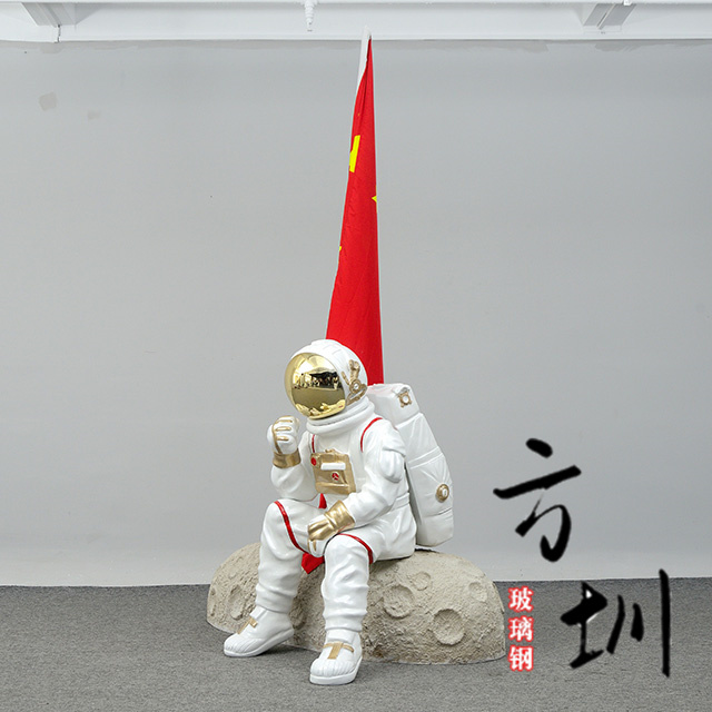 噴鍍玻璃鋼太空人雕塑制作工藝:雕刻泥稿-泥稿確認-模具制作-產(chǎn)品毛胚制作-表面效果處理-包裝。