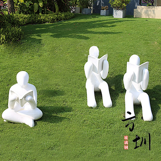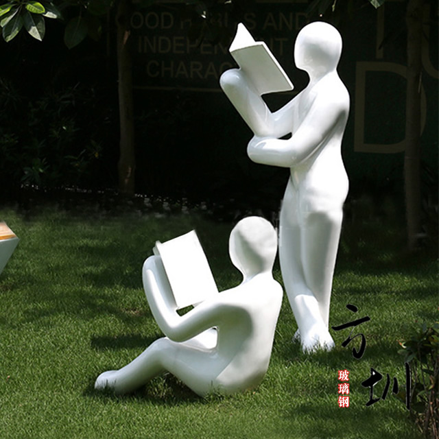 玻璃鋼校園人物念書雕塑公仔是雕塑的一種成品類型,具有質輕,耐腐蝕,成本相對較低的特點。又稱FRP,學稱纖維增強塑料(FRP glass fibre reinforced plastic),國內在習慣上稱之為玻璃鋼。它是以合成樹脂為基體材料,以玻璃纖維及其制品為增強材料組成的復合材料。