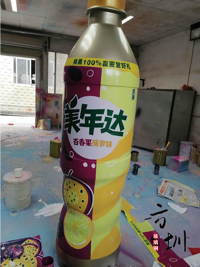 玻璃鋼飲料罐模型是我們一個(gè)四川攀枝花美連達(dá)飲料促銷展在我們工廠定制的,我們工廠專業(yè)定制各種各樣的玻璃鋼易拉罐、飲料瓶以及紅酒啤酒酒瓶,美年達(dá)是被百事公司定位為抗衡可口可樂公司芬達(dá)的一種飲料。于大部分同類飲料一樣,美年達(dá)會(huì)根據(jù)不同市場(chǎng)的需要而發(fā)行不同口味的新配方。