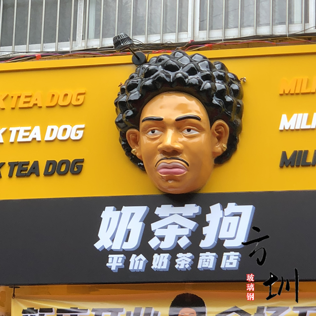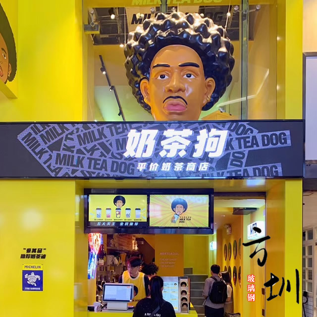 奶茶店玻璃鋼門頭裝飾人物造型