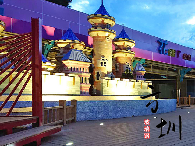 景區玻璃鋼宮殿城堡表面做多色彩繪效果,采用196優質樹脂+玻璃纖維白金布增強材料等復合而成,景區風格的玻璃鋼城堡宮殿吸引和引導游客出入,提升景區特色項目的整體形象。
