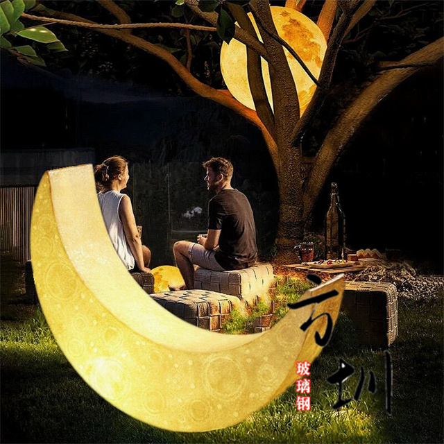 景觀月亮燈座椅美陳裝飾是景區民宿周邊環境的吸引人流的特色亮點,其不光能起到吸引人流、樹立品牌、帶動消費,還能為城市美化、提高城市素質面貌起到積極作用。大型主題場景是具有鮮明特色,帶有故事主題性的場景布置。大型主題場景一般是為商家定制打造,往往具有唯一性,是吸引人流,擴展品牌知名度的一種方式。好的主題場景不光產品效果突出,而且能起到宣傳品牌文化,樹立品牌認知度。