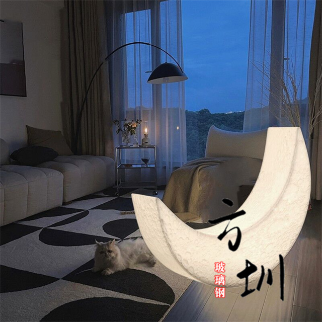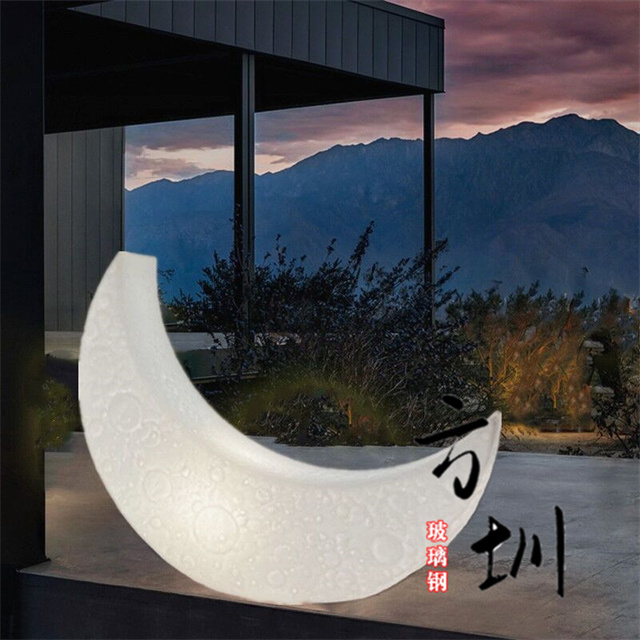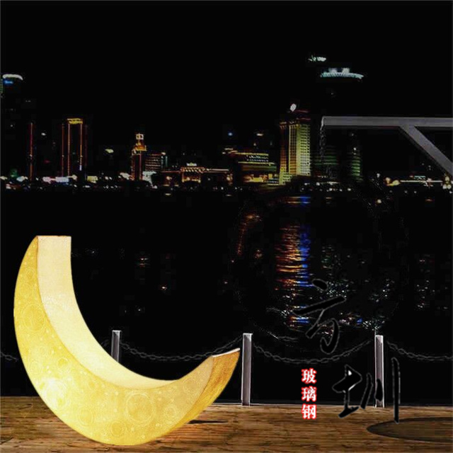 景觀月亮燈座椅美陳裝飾采用了環保PE材料制作,內置LED高亮燈帶七彩16個銀色的燈光,產品尺寸規格:1500*400*1200mm,電壓:12V/24V/220V,功率:30W,燈光模式:遙控,月亮燈躺椅適合室內或戶外使用,防水等級達到了IP65,適合多場景應用例如:廣場商超、文化旅游、主題公園、小區物業、家庭庭院等。