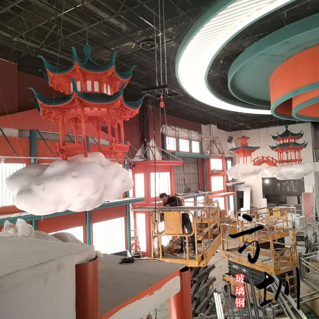 玻璃鋼云朵涼亭中式婚慶宴會廳裝飾案例