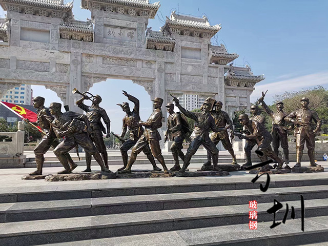 廣場玻璃鋼持槍八路軍雕塑既是延安精神、太行精神乃至全民族抗戰(zhàn)精神的生動展現(xiàn),又與延安精神、太行精神甚至民族抗戰(zhàn)精神的形成和造就密不可分。 紅物雕塑創(chuàng)造重要的目的就是弘揚紅色文化,所以在實際的創(chuàng)造中應(yīng)該充分了解故事的時代背景和人物的精神品質(zhì),通過雕刻塑造人物的靈魂。在個性塑造的層面,不僅僅是要塑造人物表面的形體形象,更要注重人物的思想品質(zhì)。